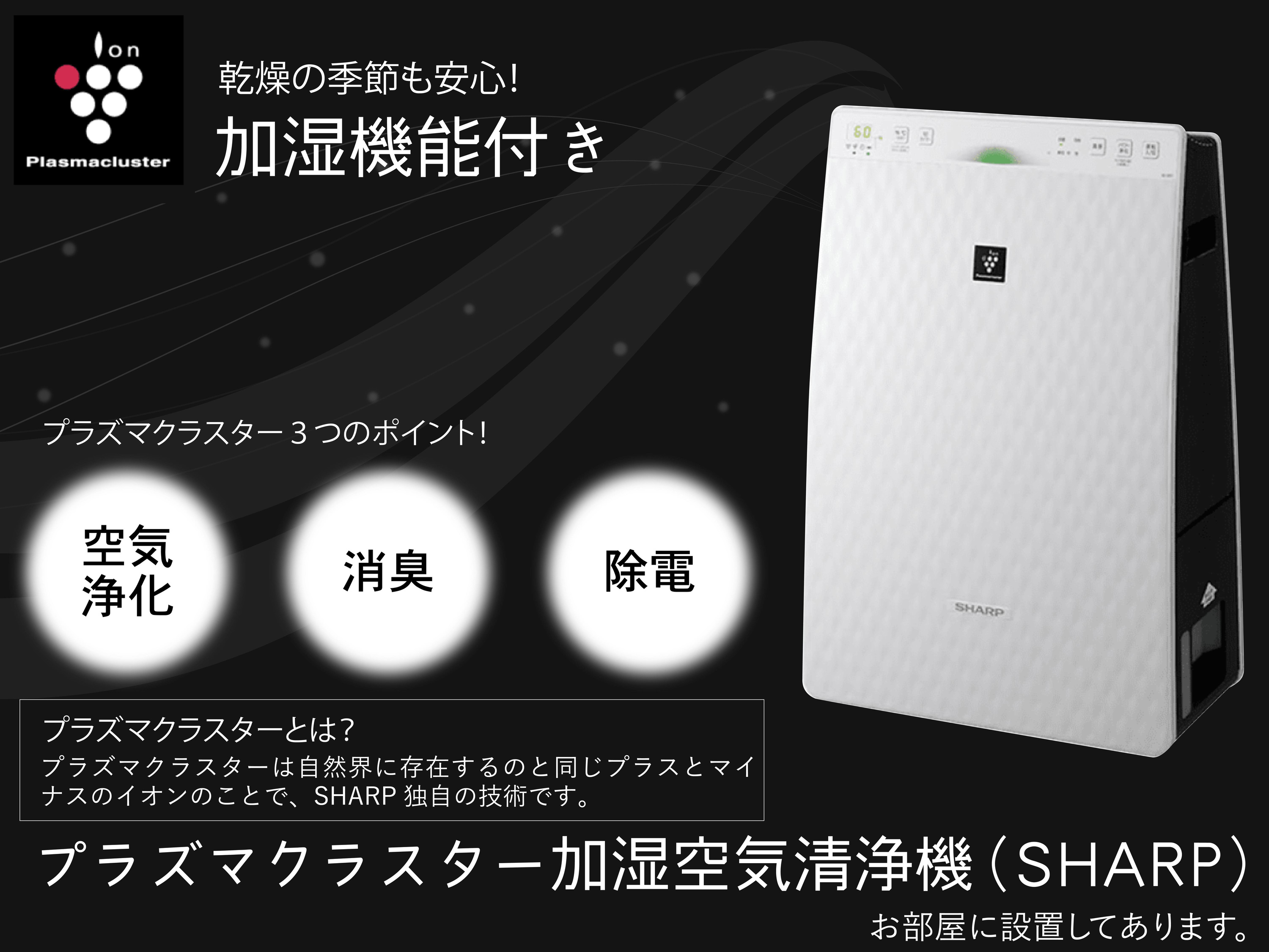 シャープ独自の技術「プラズマクラスター」により、菌やウイルスに対し、表面の細胞膜のたんぱく質を切断して分解・除去する「空気浄化」、嫌なにおい成分を分解・除去する「消臭」、さらには「静電気抑制」、加湿機能による「保湿」などを実現しています。